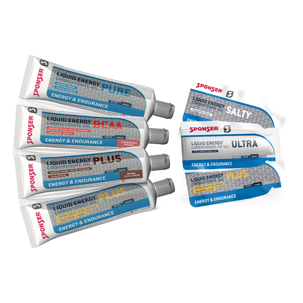 Os géis Liquid Energy são uma fonte de alta densidade de energia com uma ótima compatibilidade. Essa energia altamente concentrada na forma líquida é ideal para exercícios nos quais a respiração e o desempenho atlético não devem ser comprometidos pela mastigação ou digestão. Os géis Liquid Energy estão disponíveis em tubo ou saquetas.